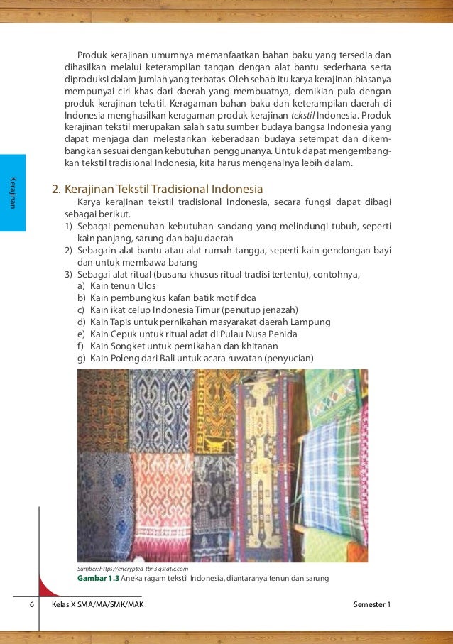 KERAJINAN TEKSTIL Kelas 7 Tujuh Watch later. Kerajinan tekstil tradisional yaitu kerajinan yang dibuat secara manual dengan menggunakan tangan manusia yang juga dibantu dengan mesin. 14122020 Kerajinan tekstil tradisional digunakan sebagai busana khusus dalam tradisi ritual tertentu.