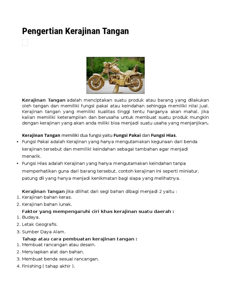 Dengan majunya pola pikir masyarakat pedesaan maka masyarakat mengetahui. Kerajinan merupakan sebuah hal yang berkaitan dengan buatan tangan atau aktivitas yang berkaitan dengan barang yang dihasilkan dengan melalui keterampilan tangan kerajinan tangan. 0010055705 Biaya Melalui Dana PNBP UNG TA 2017 JURUSAN PENDIDIKAN GURU SEKOLAH.